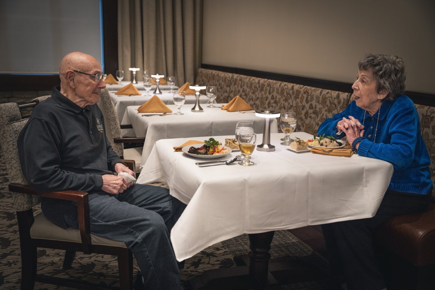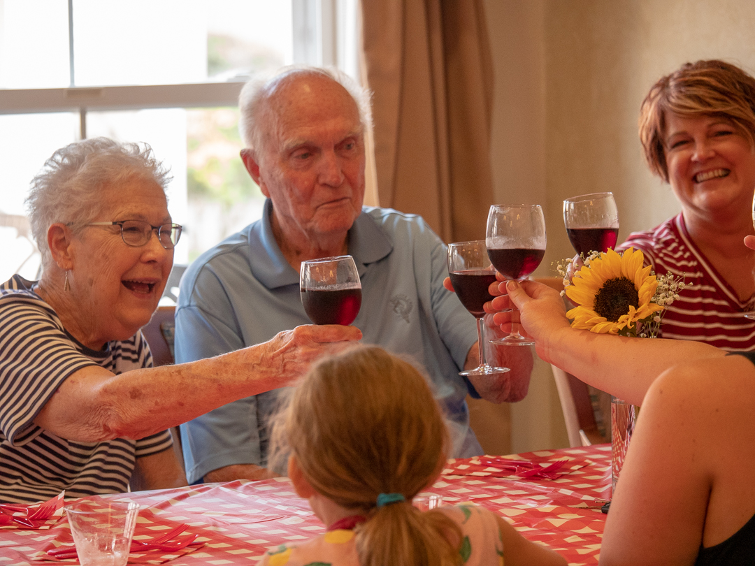 Dining is a highlight, with three made-from-scratch meals served daily in a gracious dining room—plus snacks and beverages always available. For special gatherings, residents and families can reserve our private dining room to enjoy time together in comfort and style.